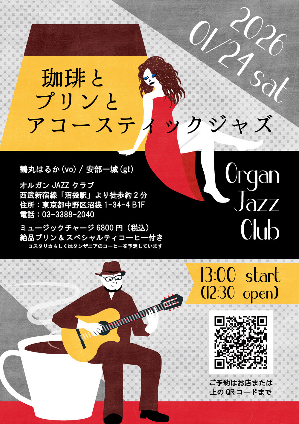 ・コスタリカ スペシャルティコーヒー+絶品プリン+ミュージックチャージ 6800円