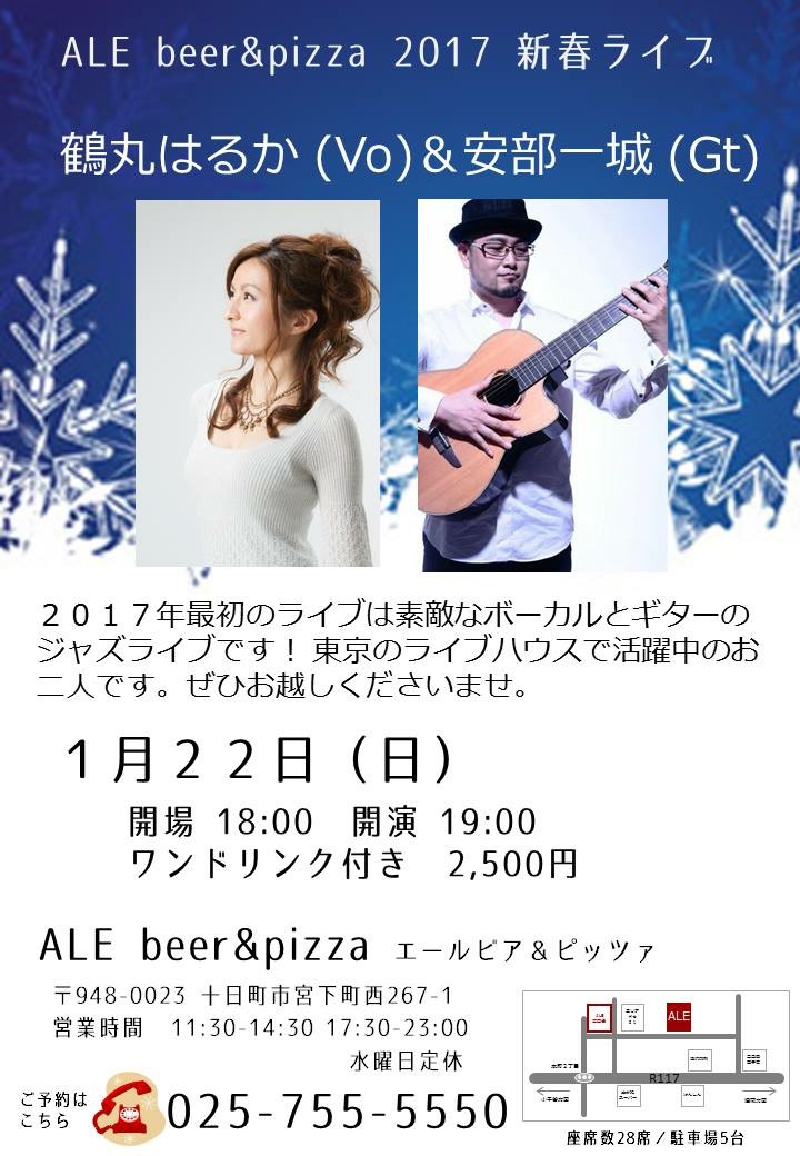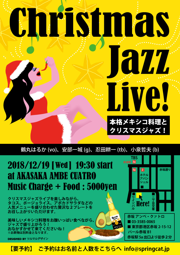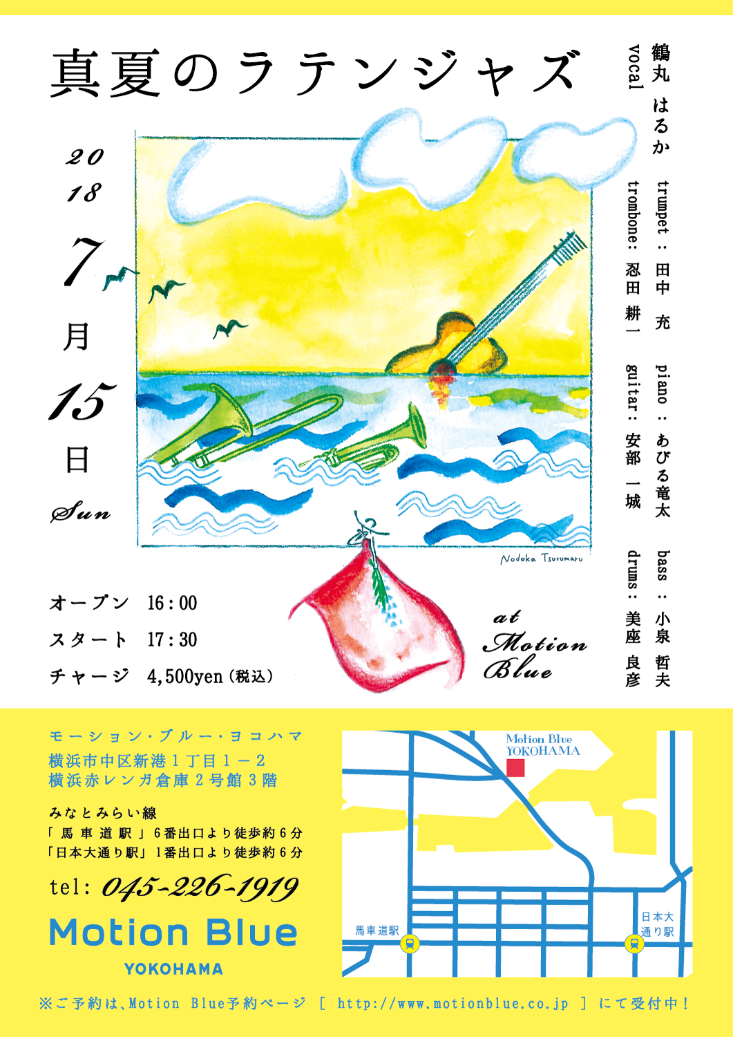 ・鶴丸はるか(vo) 安部一城(g) 忍田耕一(tb) あびる竜太(pf) 武田桂二(b) 小松伸之(dr)