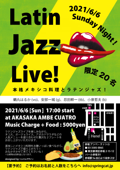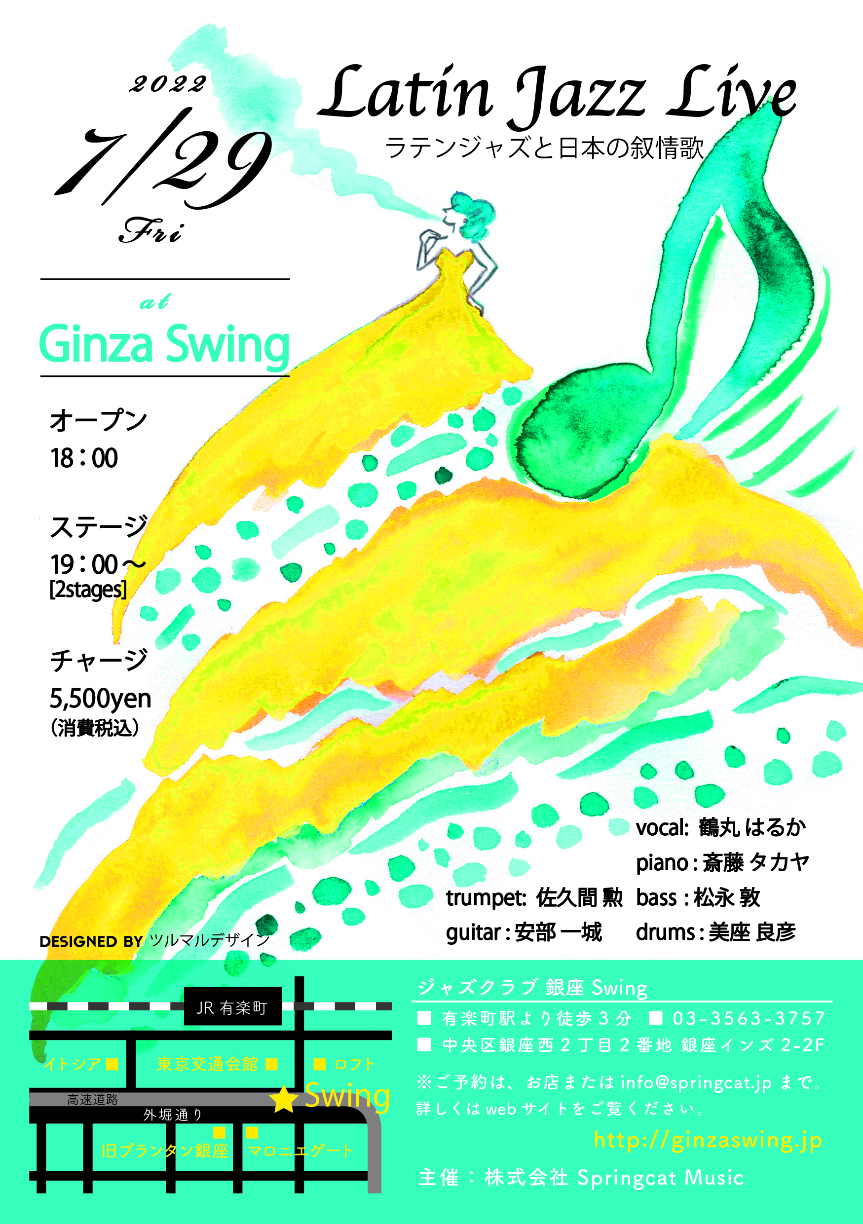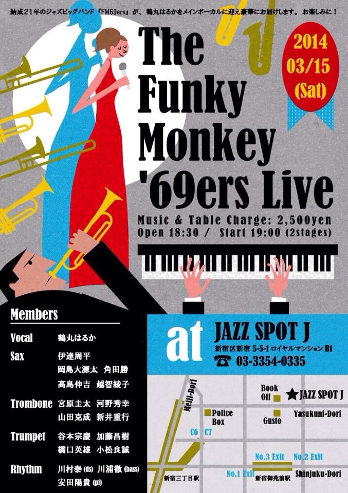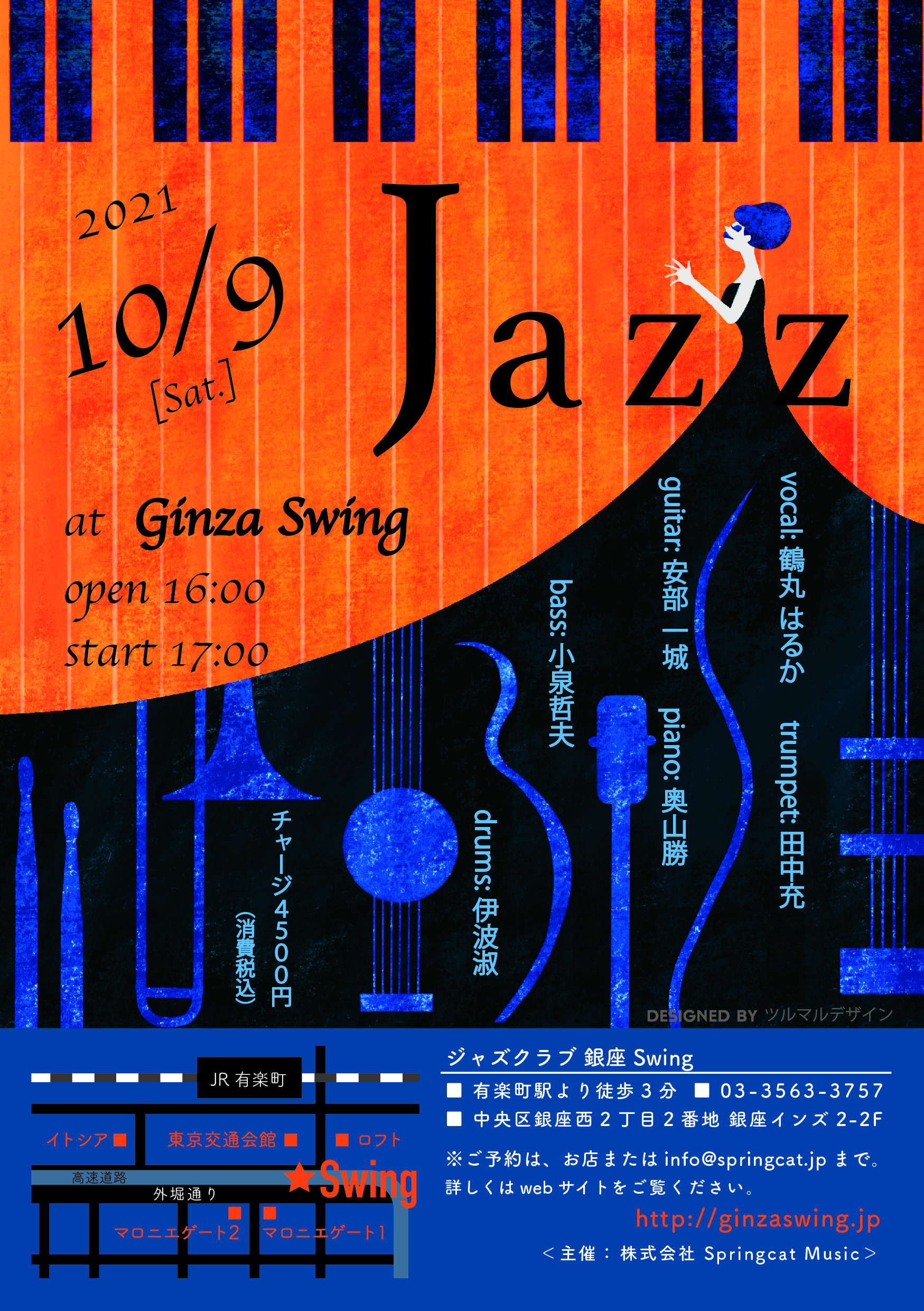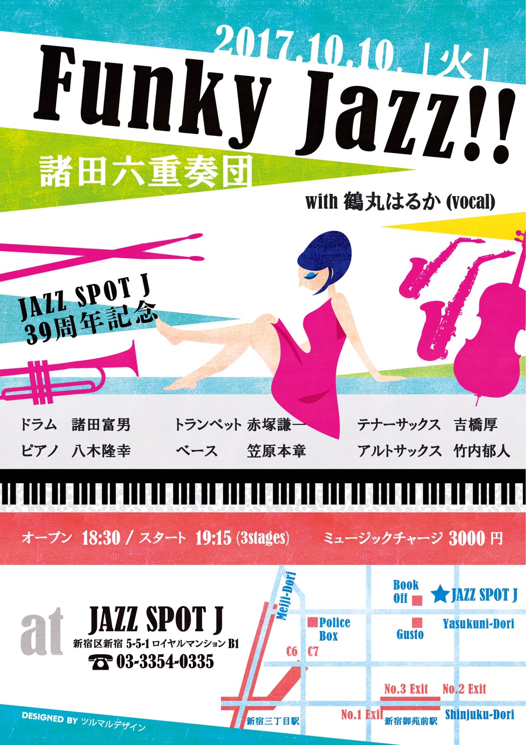 ・鶴丸はるか(vo) 田中充(tp) あびる竜太(pf) 安部一城(g) ジャンボ小野(b) 小松伸之(dr)