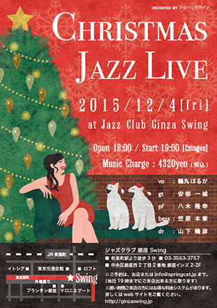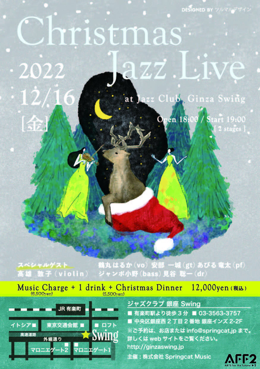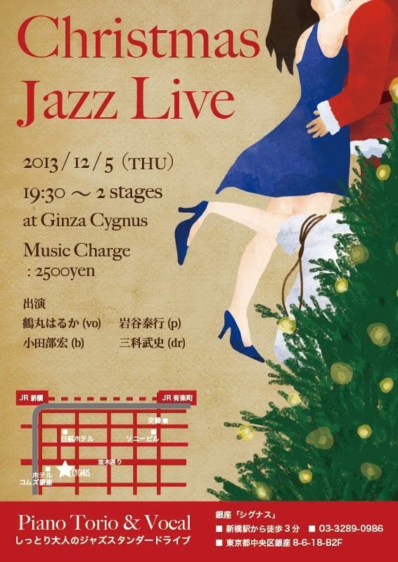 ・ミュージックチャージ(6500円)+1ドリンク+クリスマスディナー(5500円)=12000円(税込)