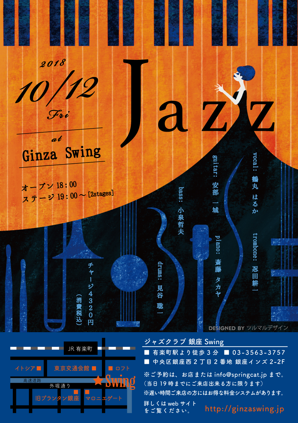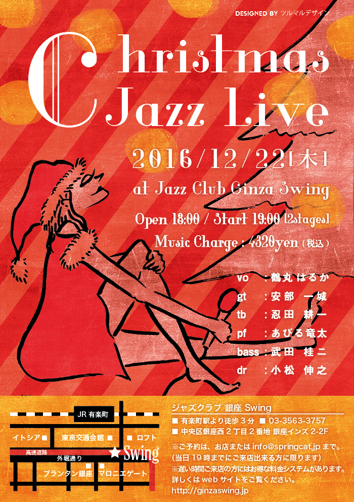 ・鶴丸はるか(vo) 安部一城(g) 忍田耕一(tb) 佐久間勲(tp) 美座良彦(per) 斎藤タカヤ(pf) 小泉哲夫(b)