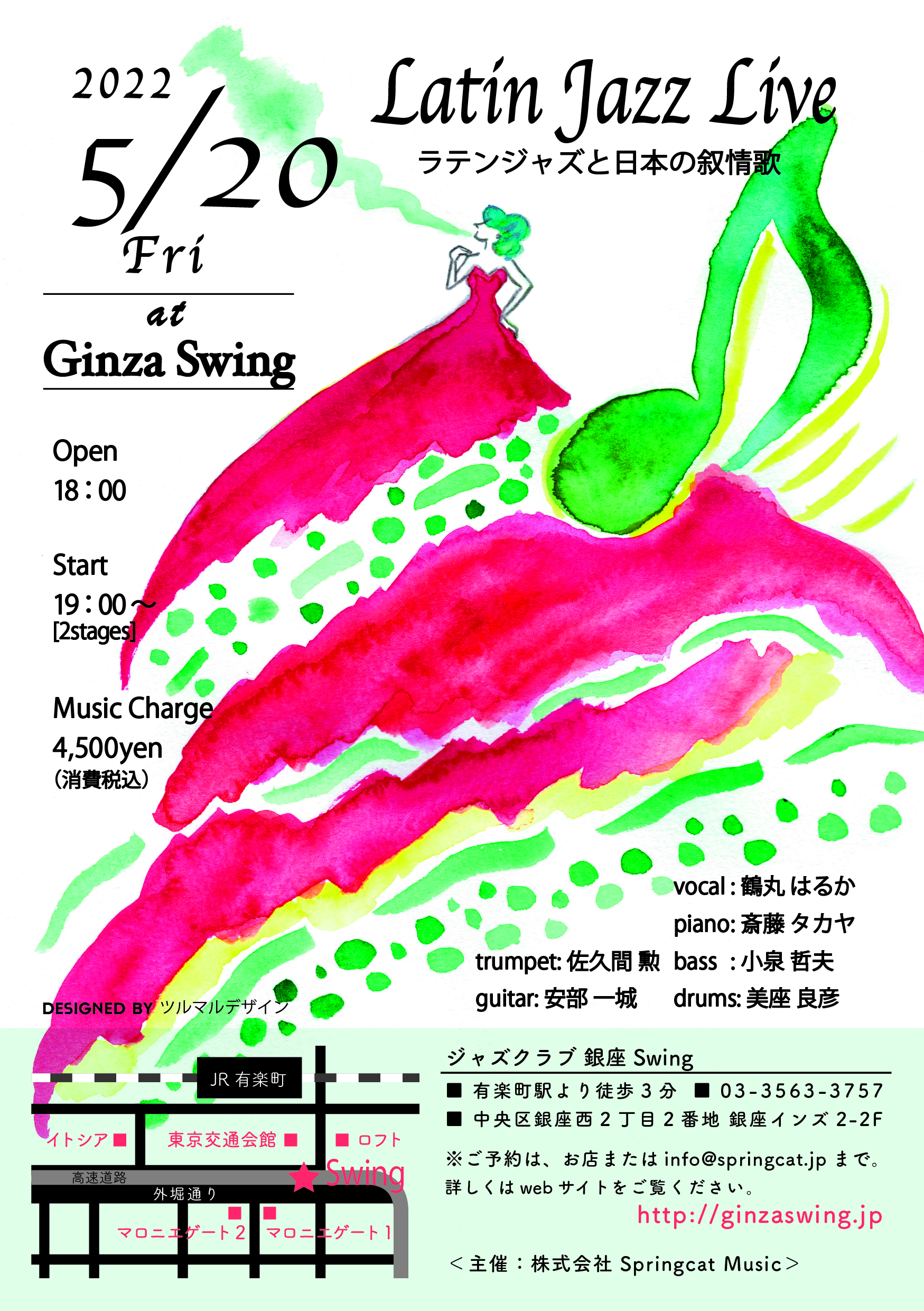 ・鶴丸はるか(vo) 安部一城(g) 佐久間勲(tp) 斎藤タカヤ(pf) 松永敦(b) 美座良彦(dr)
